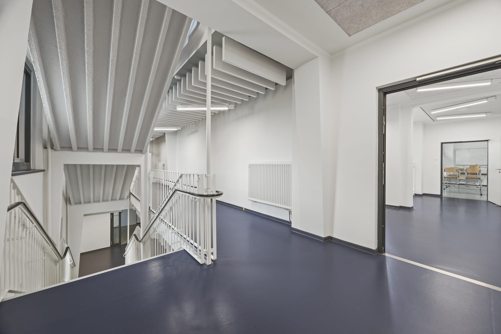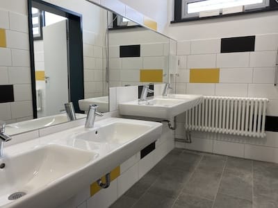 • Sanierung und Modernisierung des kompletten elektrischen, daten-, sanitär- und lüftungstechnischen Bestands sowie Erweiterung und Vergrösserung der Sanitäranlagen
