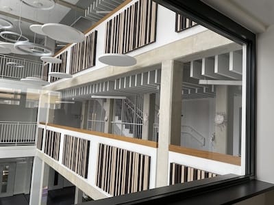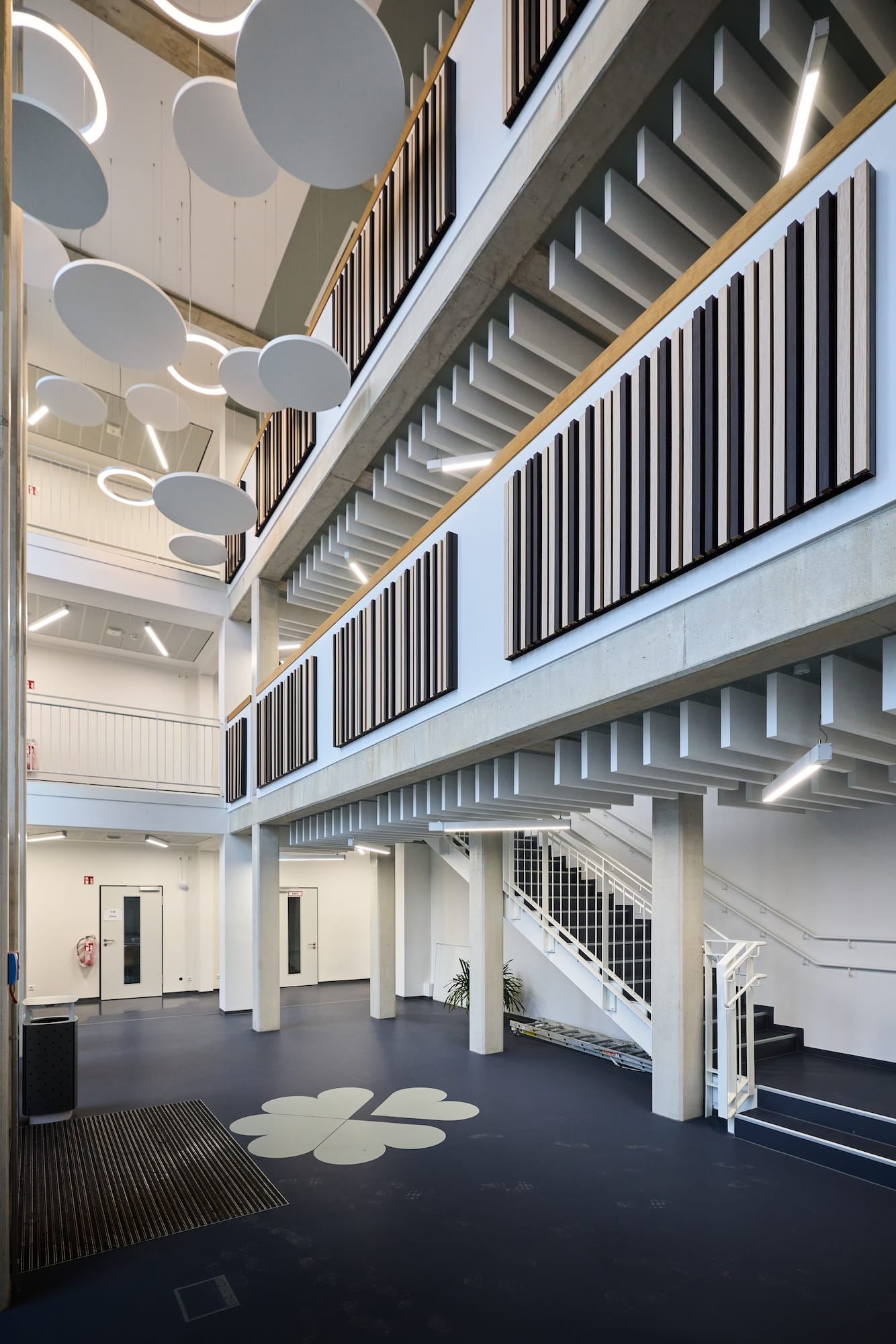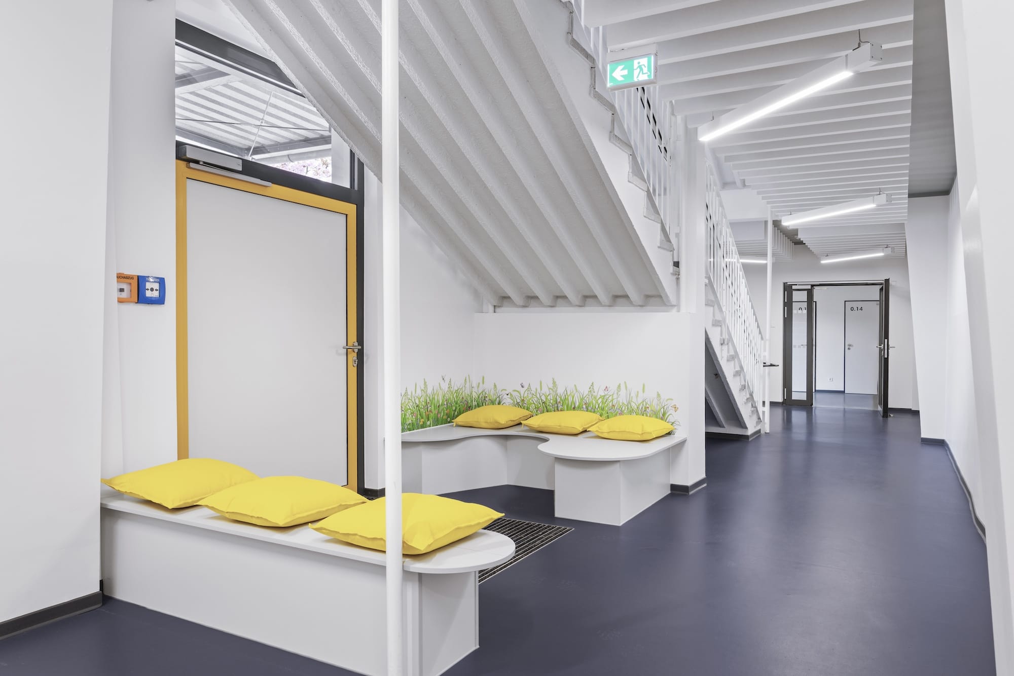 • Schaffung eines baulichen zweiten Rettungsweges und der Wiederinbetriebnahme des 2. Obergeschosses für die Schulnutzung durch die Errichtung eines Atriums