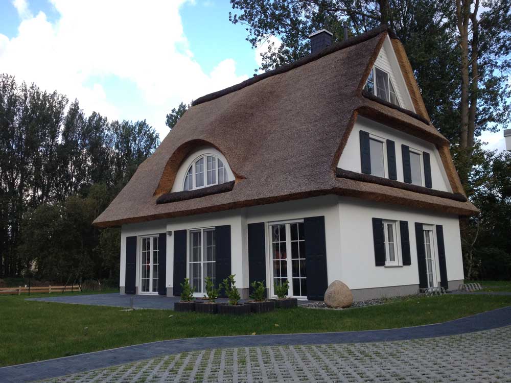 Es sind verschiedenste Haustypen entstanden. Vom einfachen Standard mit Hartdach und Kunststofffenstern bis hin zu Reetdachhäusern über 3 Etagen mit Holzfenstern und eingebauten Saunen.