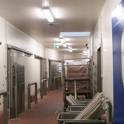 Errichtung einer fleischverarbeitenden Produktionsstätte. Die Fabrik wurde nach den neuesten Bestimmungen des EU-Rechts für die Errichtung von lebensmittelverarbeitenden Betrieben gebaut.