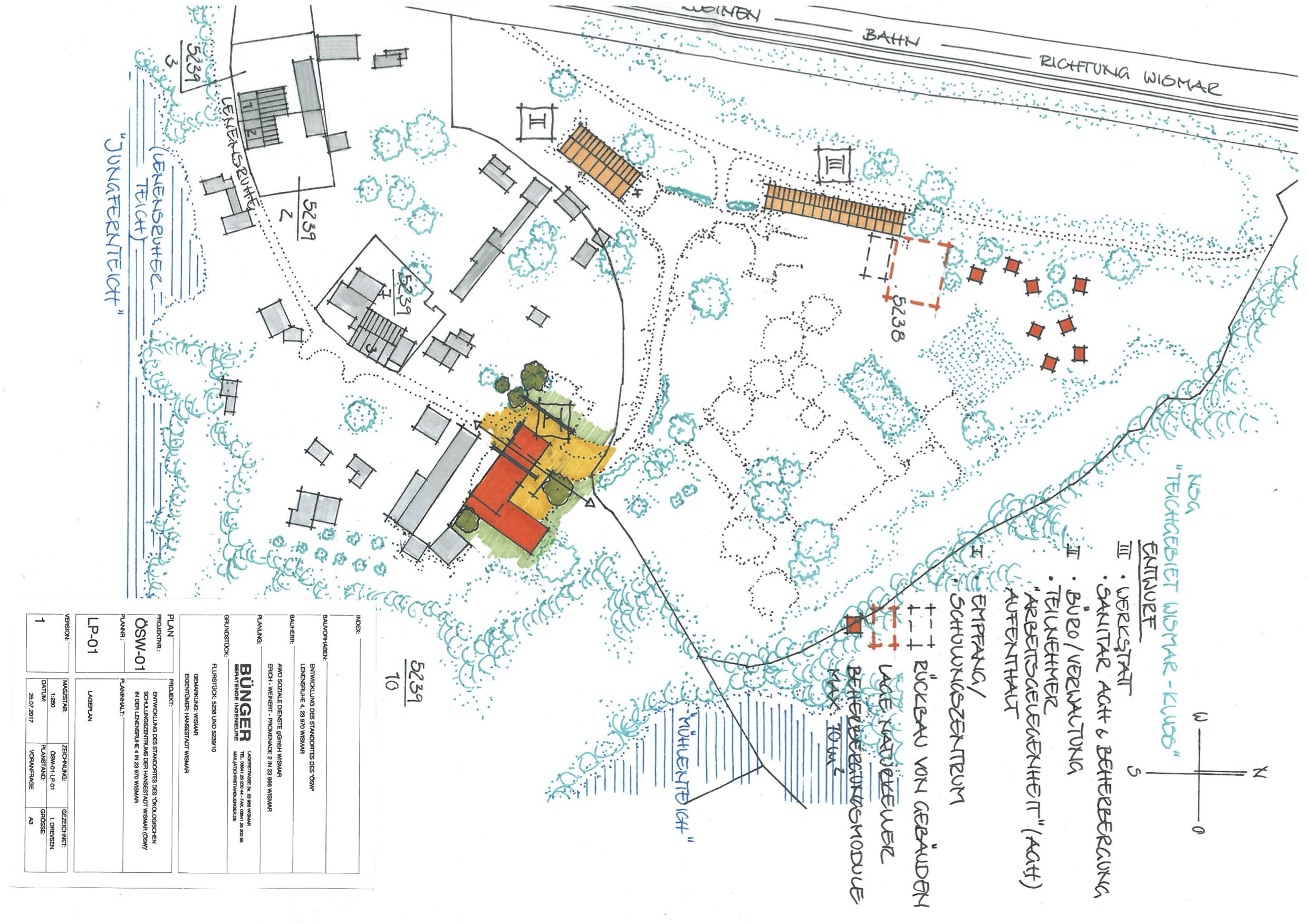 Das Ökologische Schulungszentrum ist landschaftlich eingebettet zwischen dem Naturschutzgebiet „Teichgebiet Wismar-Kluß“ mit Waldgebieten im Norden und Osten sowie der Bahnstrecke Wismar-Bad Kleinen im Westen. Am Standort des Ökologischen Schulungszentrums befinden sich verschiedene Gebäude mit Schulungs-, Werkstatt-, Lager- und Arbeitsräumen. Die Durchführung von Veranstaltungen erfolgt im Freien und in den Schulungsräumen.