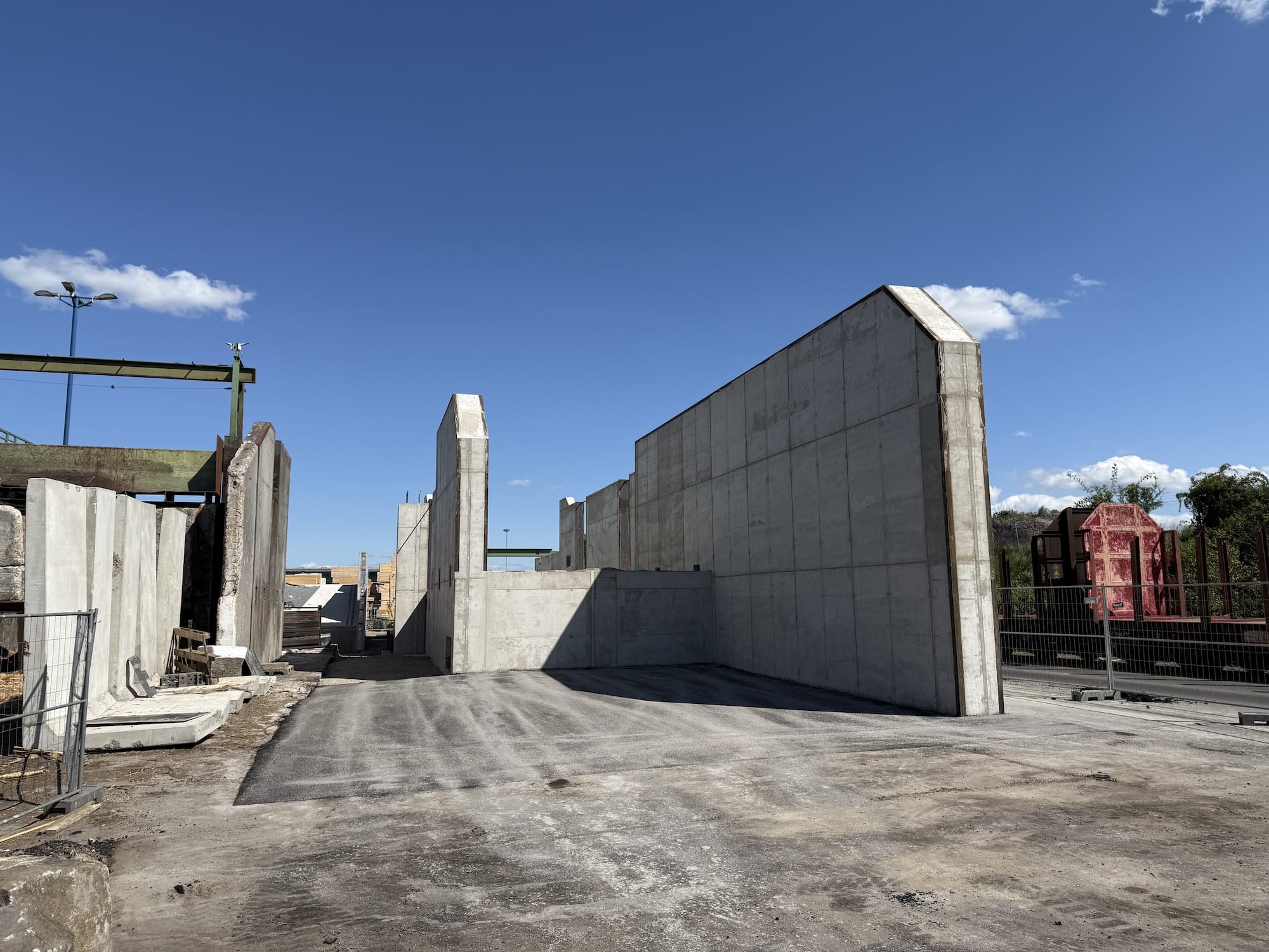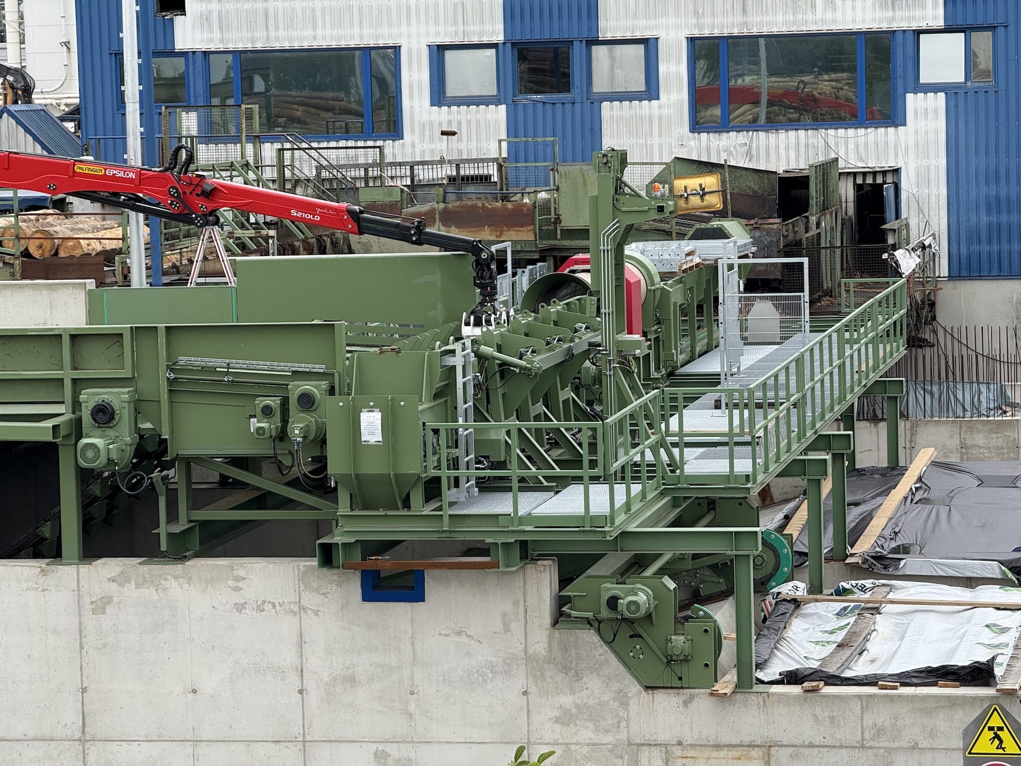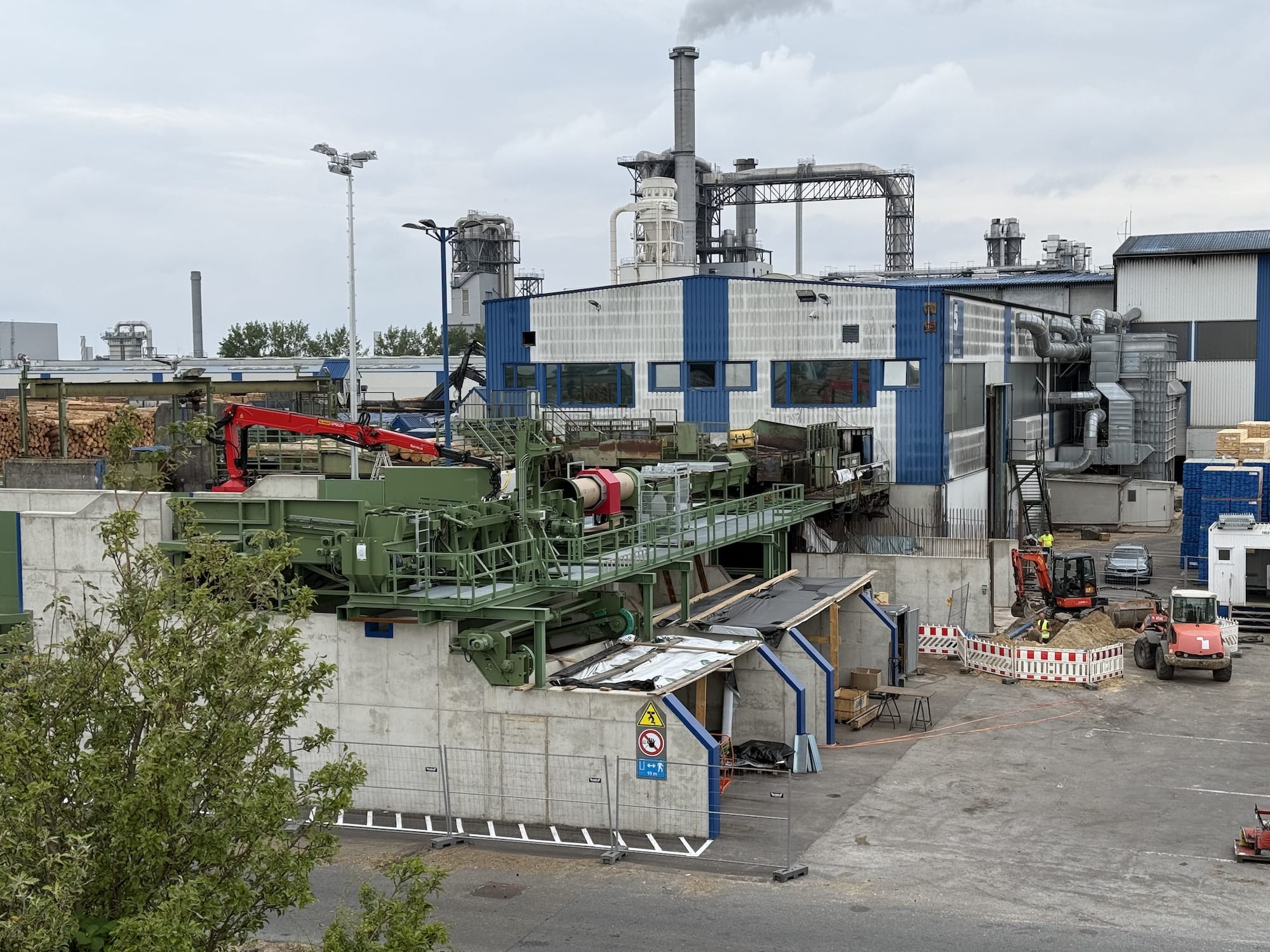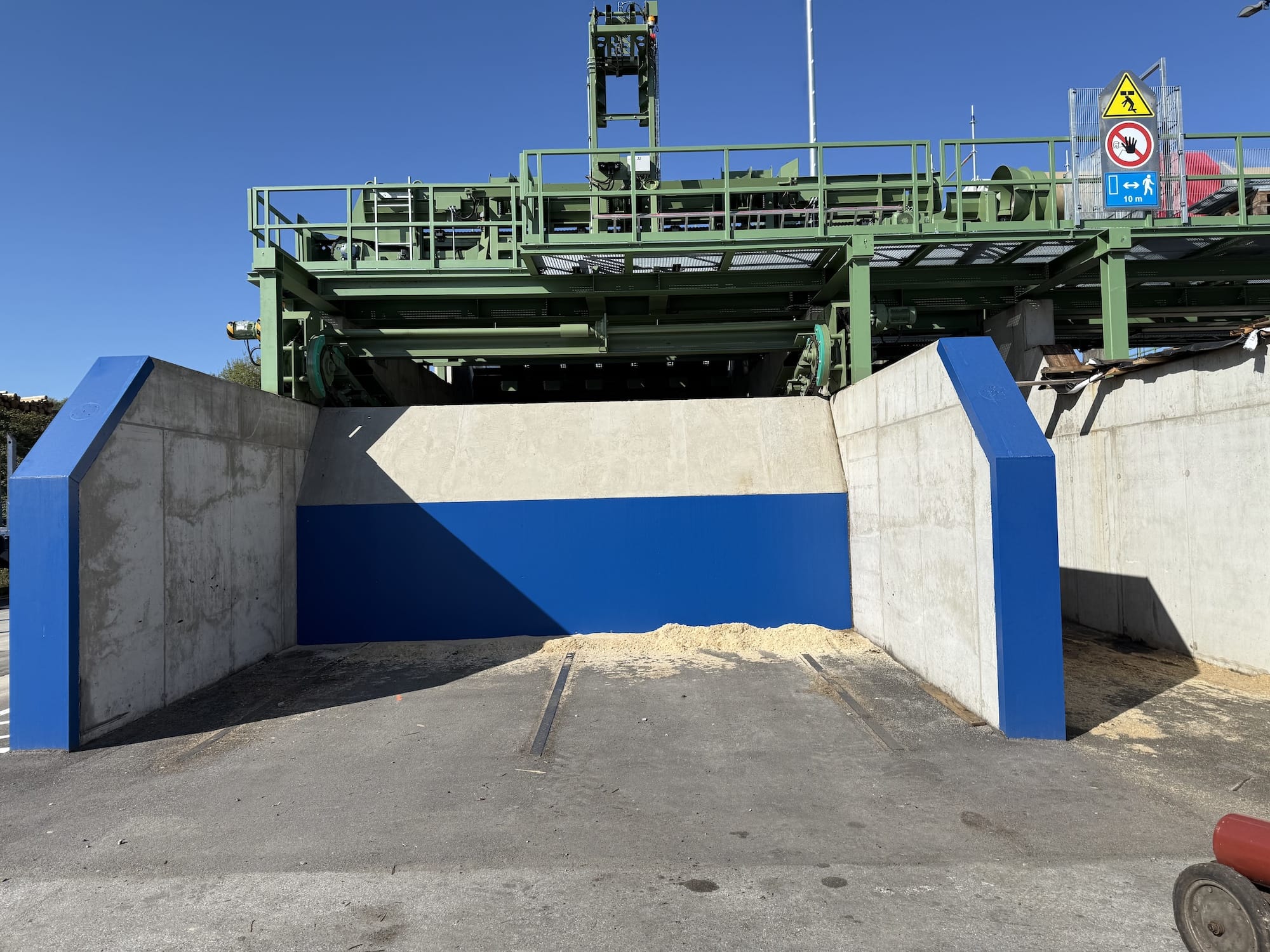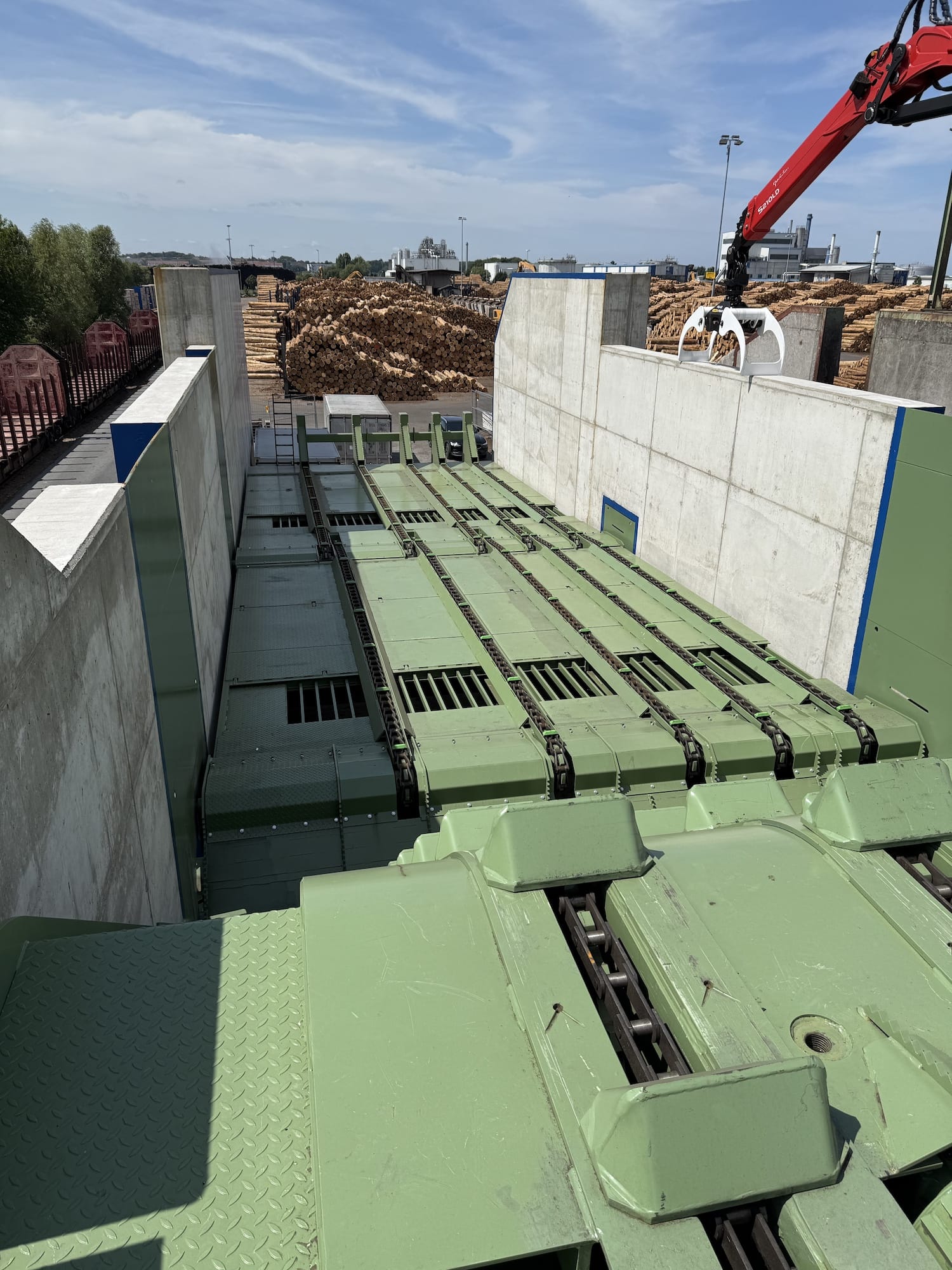 Die Holzzuführung und Holzausrichtung zu den Sägelinien wird vom Rundholzplatz mit sortierten Holzpaketen über die Aufgabentische 1 und 2 bestückt. Die bestehenden Aufgabentische 1 und 2 waren verschlissen und müssen erneuert werden. Die Planungs- und Bauaufgabe beinhaltet die Herstellung von Stahlbetonfundamenten und -wänden zur Aufnahme der neuen Maschinentechnik.