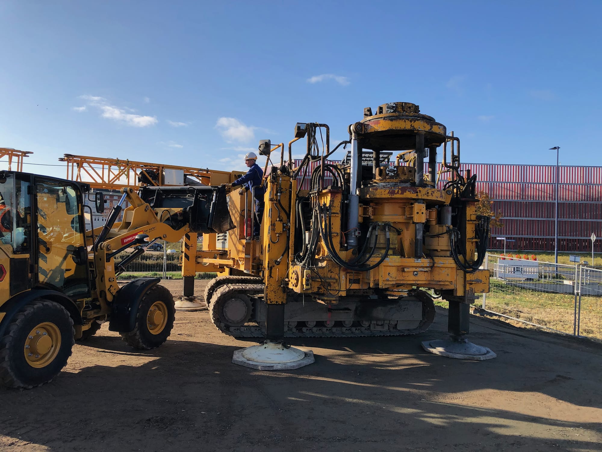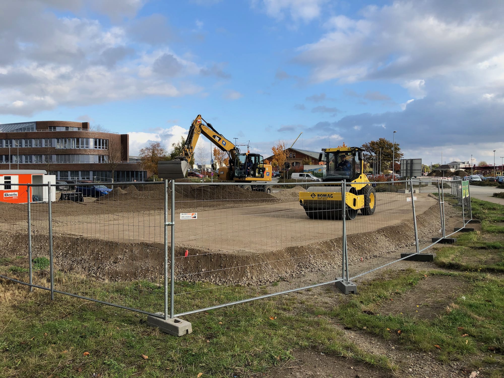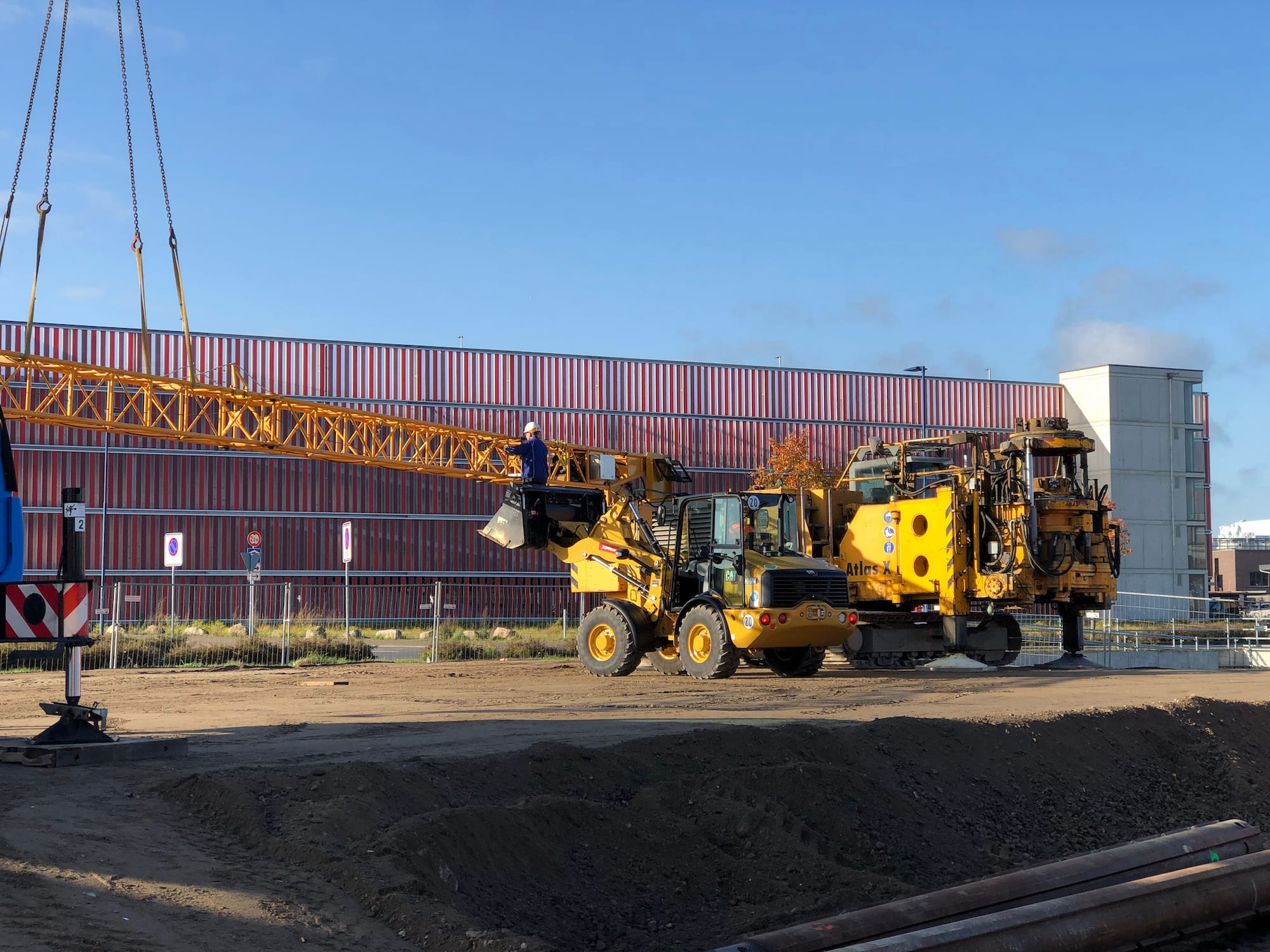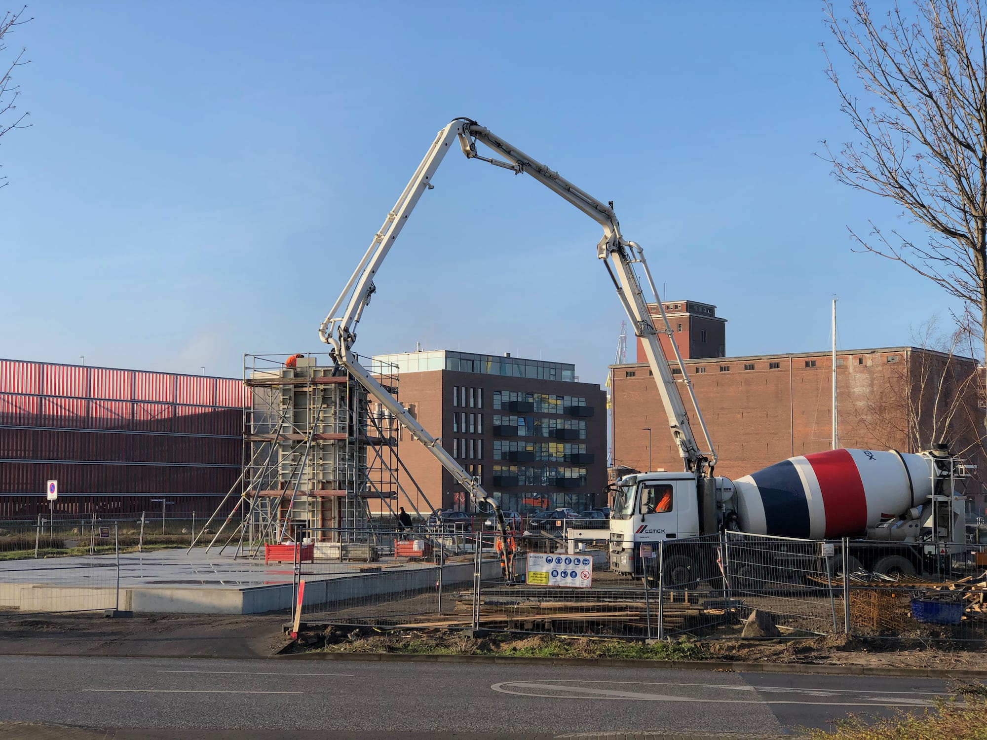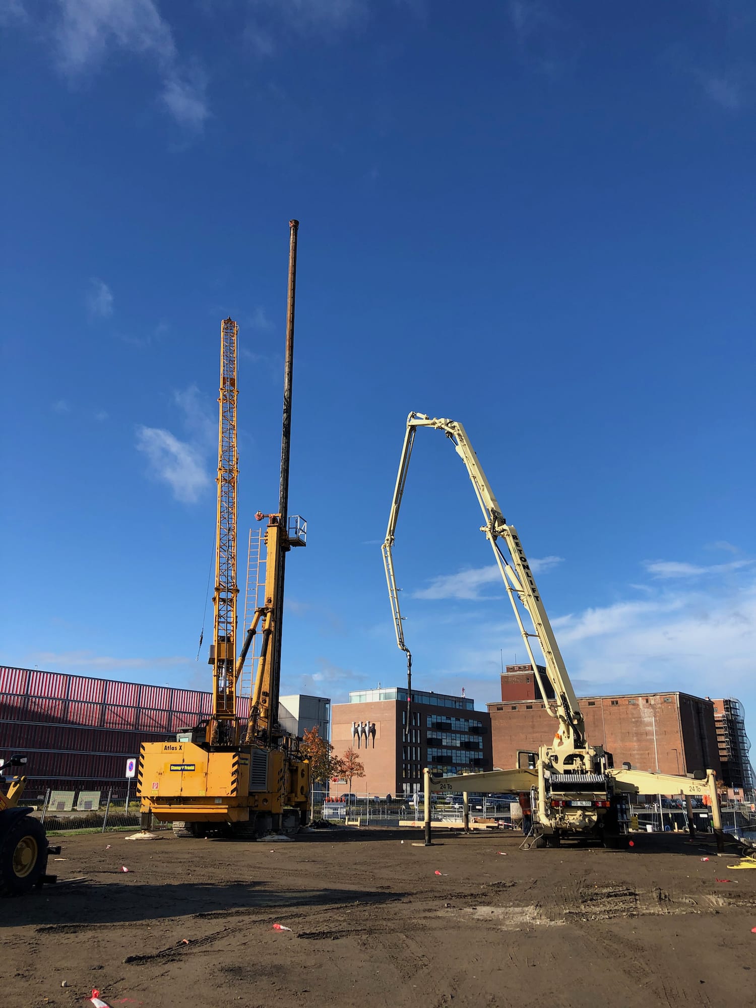 sowie der geplanten Kaisanierung in unmittelbarer Gebäudenähe war die Aufgabe, das Gebäude tief zu gründen. Im Ergebnis der Ausschreibung wurde der Einsatz von Ortbeton-Bohrpfählen als Vollverdrängungspfähle entschieden. Es wurden 28 Pfähle im tragfähigen Horizont abgesetzt. Nach dem Kappen der Pfähle, wurden die Pfahlköpfe in eine 50cm dicke Stahlbetonsohle eingebunden. Der Fahrstuhlschacht und Hausanschlußschacht wurden als Stahlbetonbauteile in die Sohle integriert.