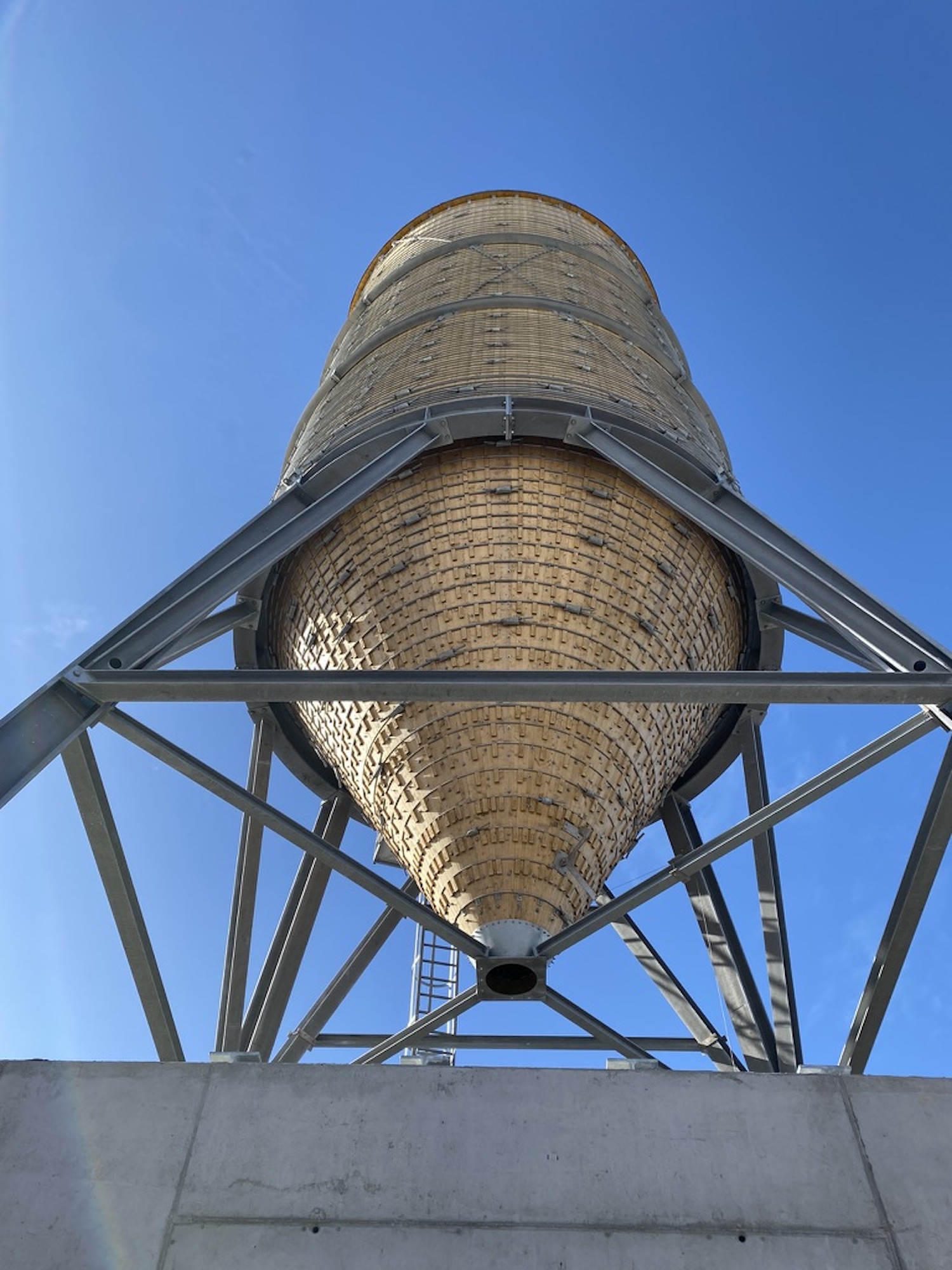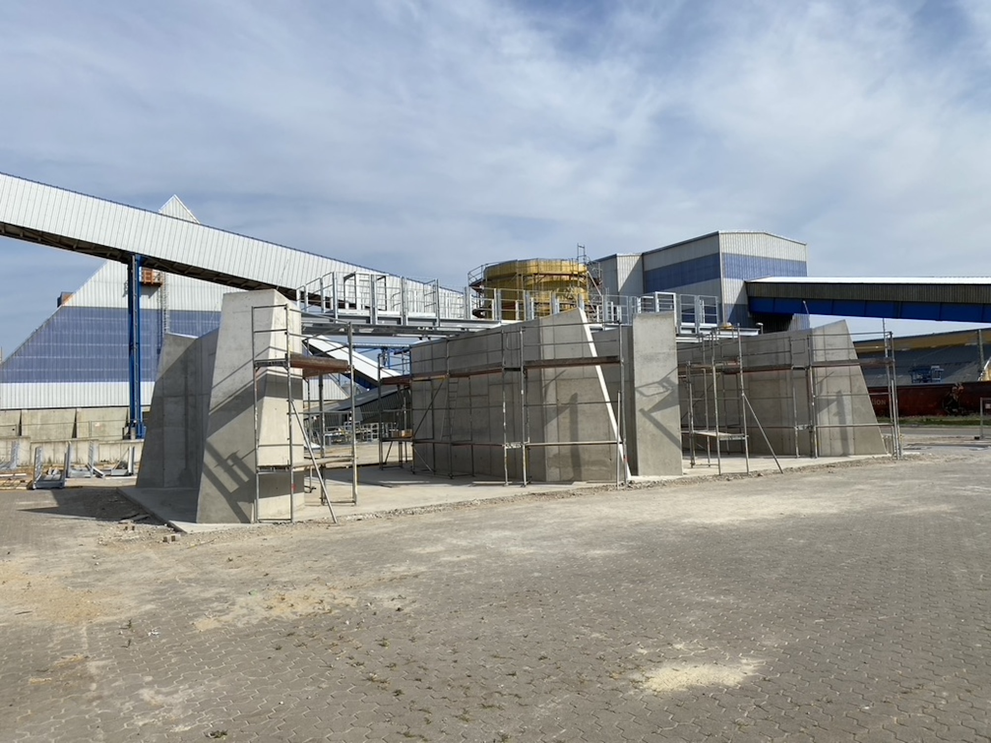 So kann jetzt die mobile Verladung durch die Fahrer der Speditionsunternehmen selbst vor Ort in zwei Fahrspuren vorgenommen werden. In zwei Salzsilos werden die Verlademengen gespeichert und bei Bedarf über die Kalihalle 3 nachgefüllt. Die Salzsilos wurden aus Korrosionsschutzgründen als Holzkonstruktion ausgeführt.